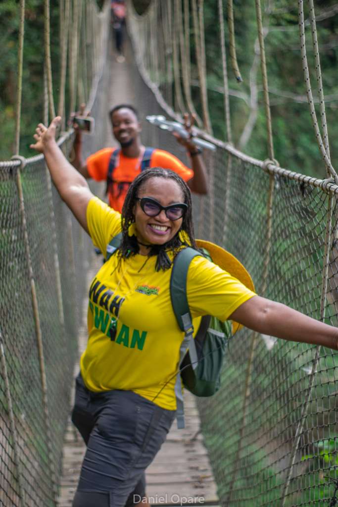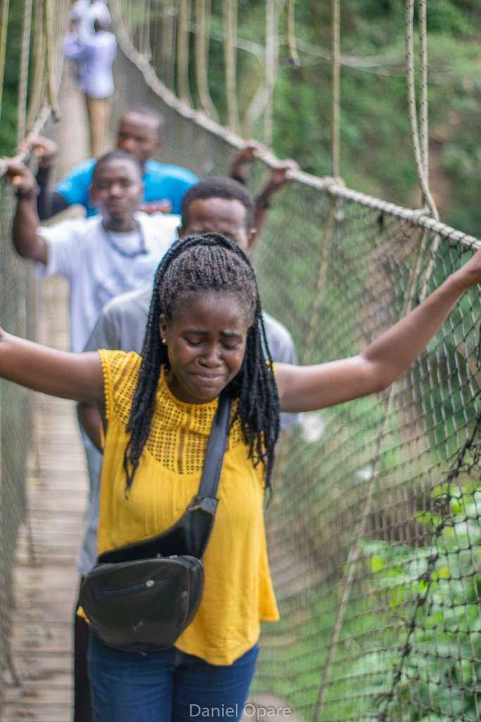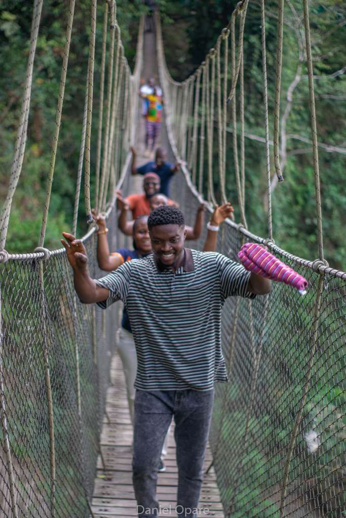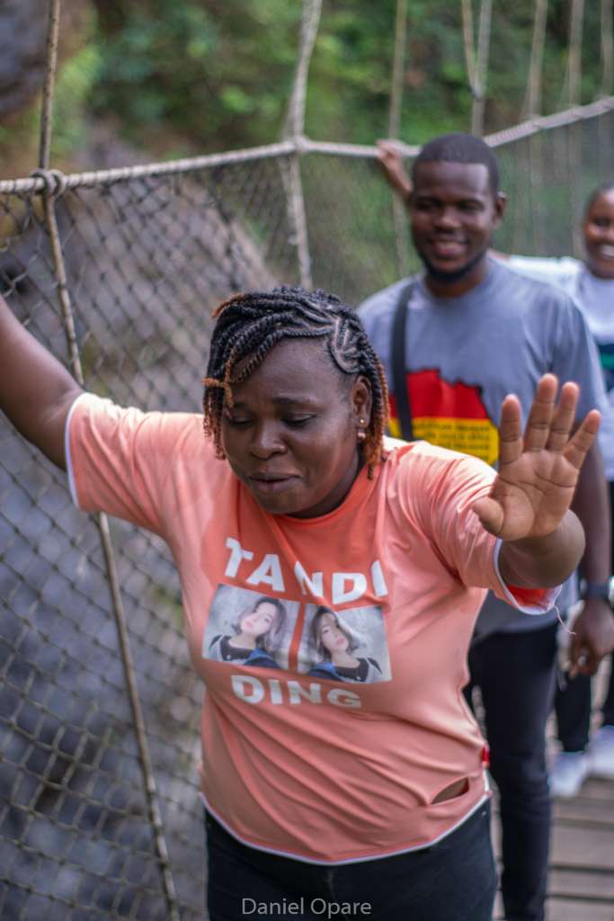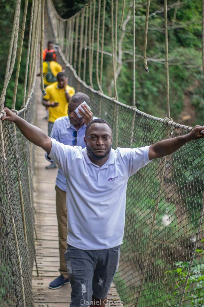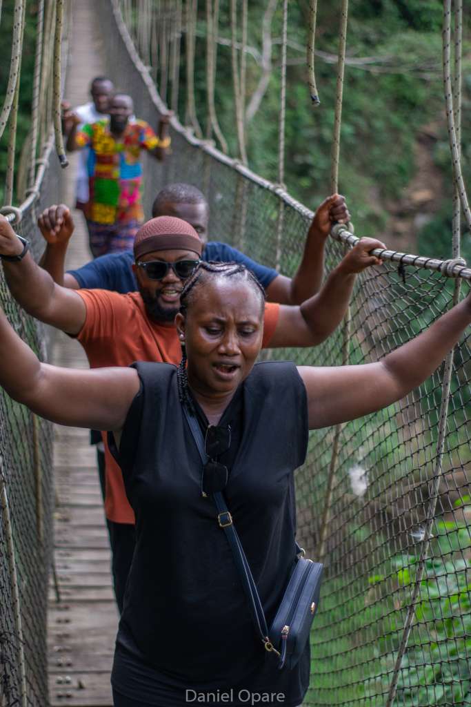 After conquering Mount Gemi, students embarked on a 15-minute journey to the Amedzofe Canopy Walkway, which required descending 295 steps. The sheer joy of the students was evident as they shared their thrilling experiences. Nearby, the local tour guides proudly showcased their apple farm, which adds to the charm of Amedzofe’s landscape. This canopy walkway, constructed on January 5, 2022, and opened in December 2022, is uniquely positioned to provide close-up access to one of Ghana’s most beautiful waterfalls, Ote Waterfalls.